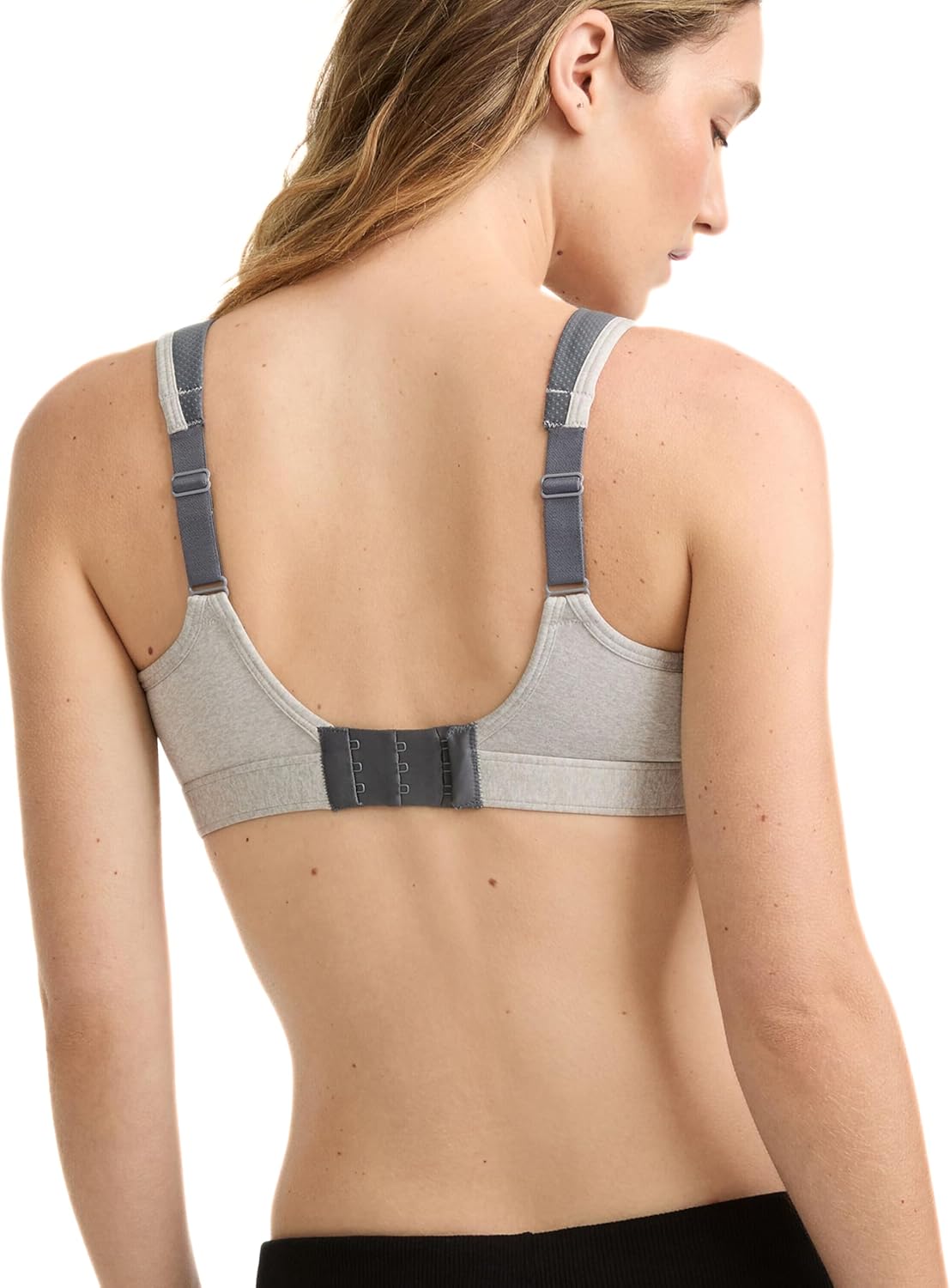 SPOT ON COMFORT. The Spot Comfort® Full Support Sports Bra with maximum support is wire-free and has molded cups that provide natural shaping and superb support for high-impact activities. Mesh neckline, front inset panel, and straps offer strategic ventilation where you need it most. This high-impact sports bra is made with Double Dry™ technology to wick away moisture. Comfort is enhanced further by the smooth lining and bottom band that feel great against your skin. Soft gel-infused straps are designed to take the pressure off your shoulders, and reduce dig in. You’ll also appreciate the U-back design with set-in straps and cushioned hook-and-eye closure. There’s lots to love about this bestselling, high-impact sport bra.
