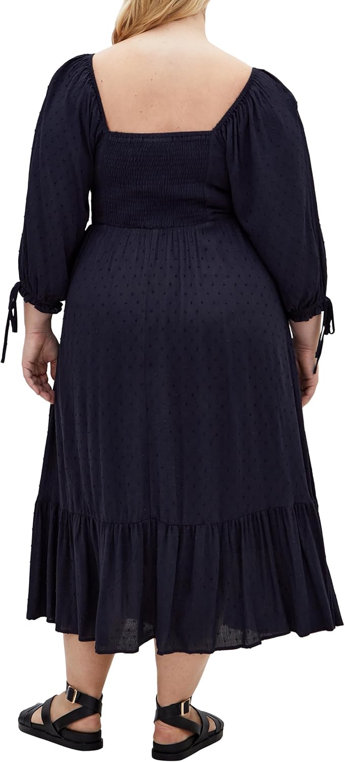 Embrace your latest seasonal staple with the Ally Dress, perfect for a versatile boho vibe. This curve flattering dress offers easy comfort with its breezy relaxed fit, long floaty length and cute dobby spot design. Key Features Include: – Square neckline – On-off elasticated sleeves with faux tie cuff detail – Layered bust design – Elasticated waistline – Frilled hem – Shirred back – Partially lined – Pull over style – Long length skirt Wear with flats or heels and a swap of accessories for the ultimate versatility.