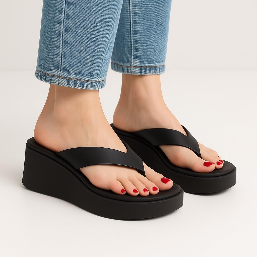 Step into these fashionable and comfortable platform sandals to carry you through your day with ease. These sandals feature a soft thong upper and Memory foam insoles.