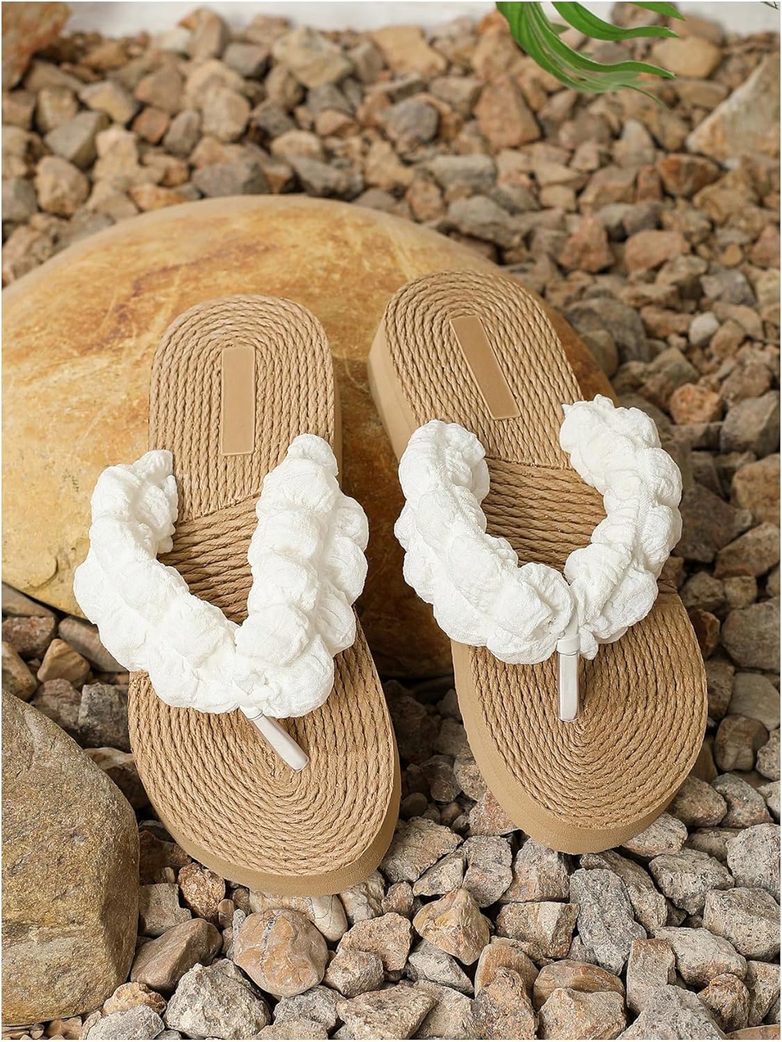 OYOANGLE Women’s Braided Boho Lightweight Platform Flip Flops