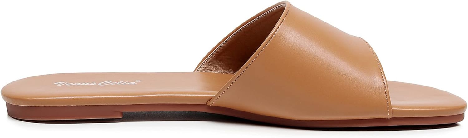 VenusCelia Women’s Plain Wide Flat Sandal